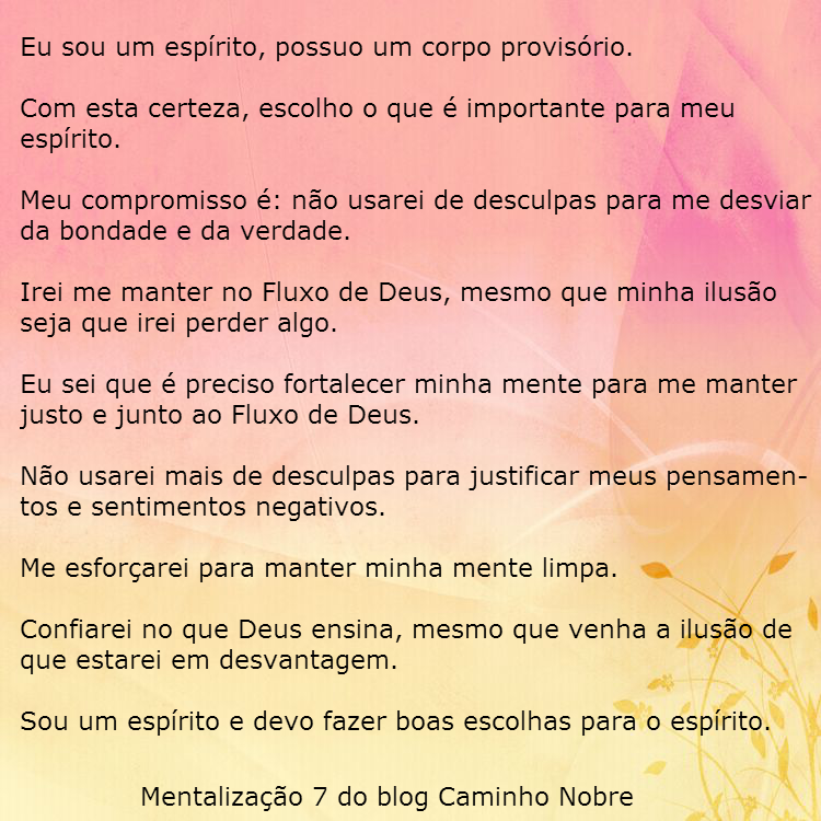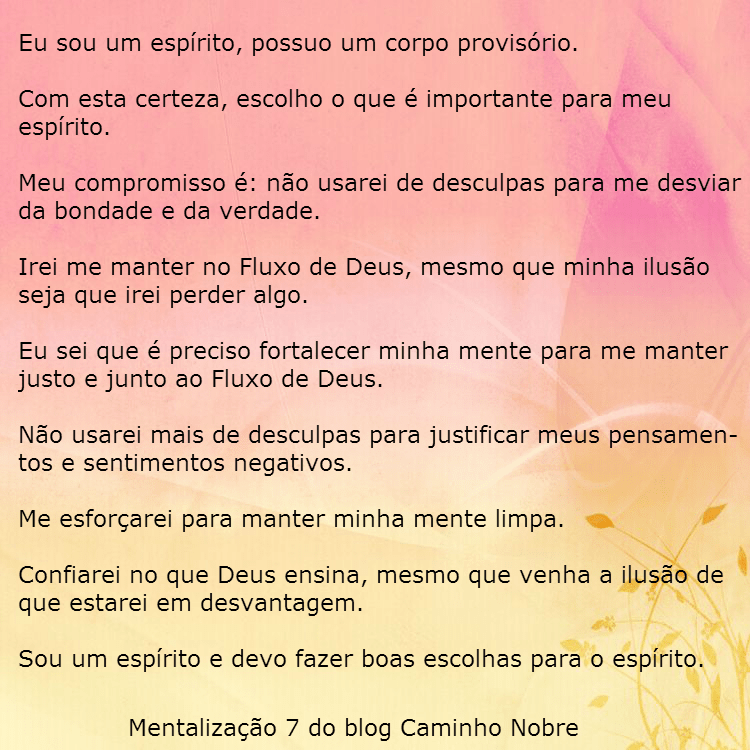 Sou um espírito e devo fazer boas escolhas para o espírito » Mentalização 7