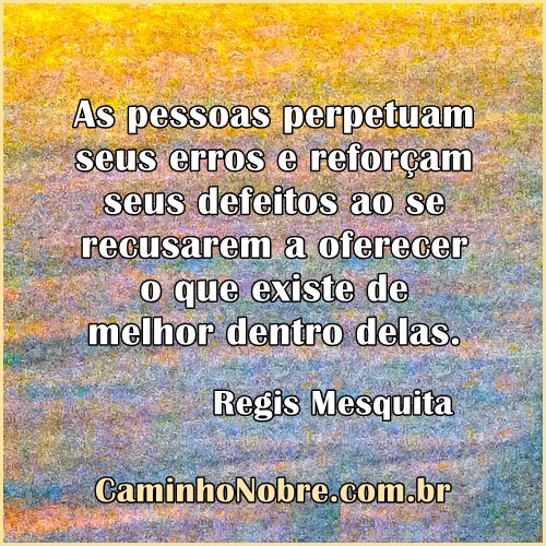 As pessoas perpetuam seus erros e reforçam seus defeitos ao se recusarem a oferecer o que existe de melhor dentro delas. Regis Mesquita