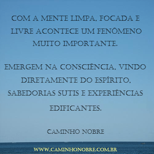 A mente limpa, focada e livre está preparada para receber na consciência as emanações do espírito.