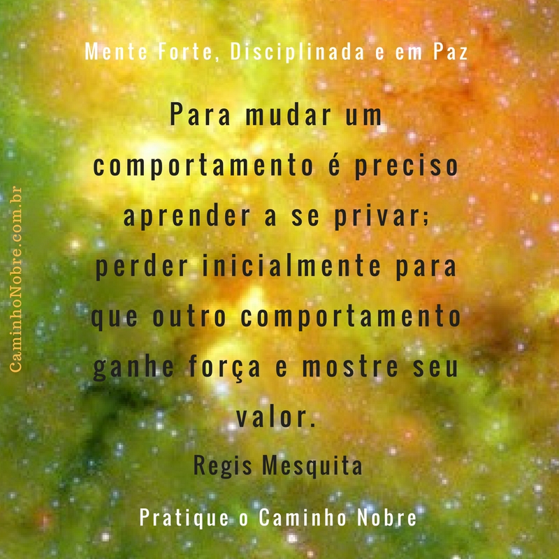 Para mudar um comportamento é preciso aprender a se privar; perder inicialmente para que outro comportamento ganhe força e mostre seu valor. Regis Mesquita