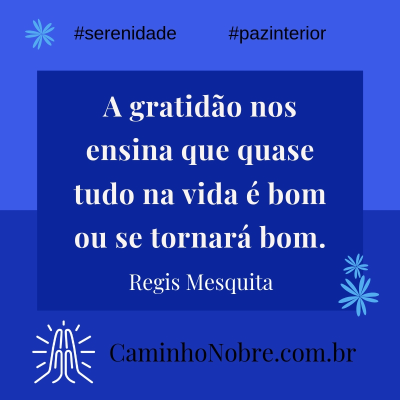 A gratidão nos ensina que quase tudo na vida é bom ou se tornará bom. Regis Mesquita
